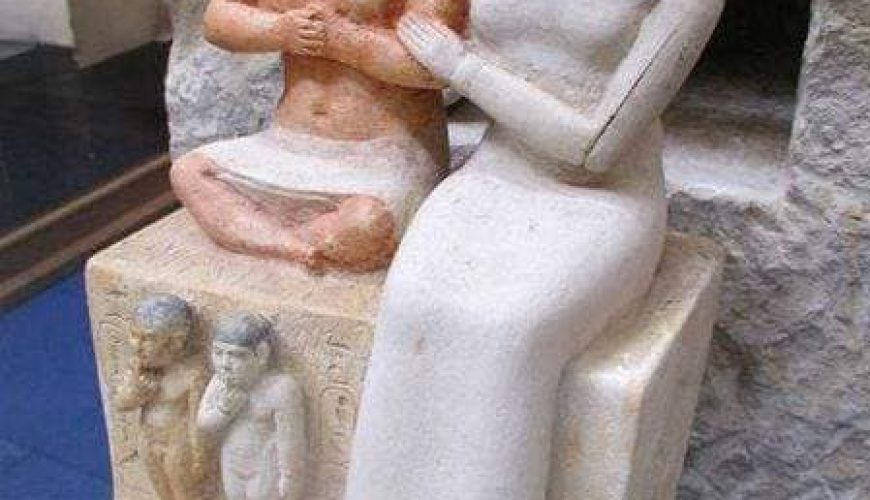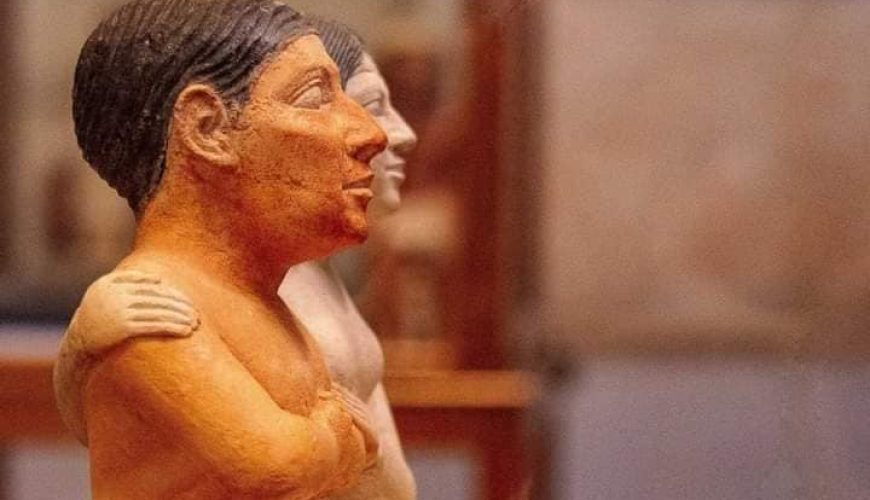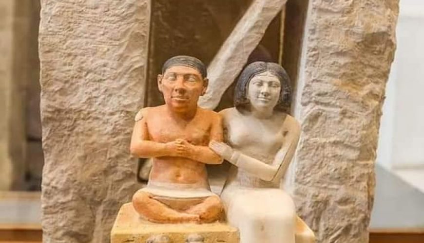 The statue of the Egyptian dwarf Seneb and his wife, sitting cross-legged on a seat without a footrest, is like the dwarf sculptor with his natural body shape. Harmonious married life.