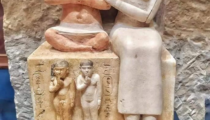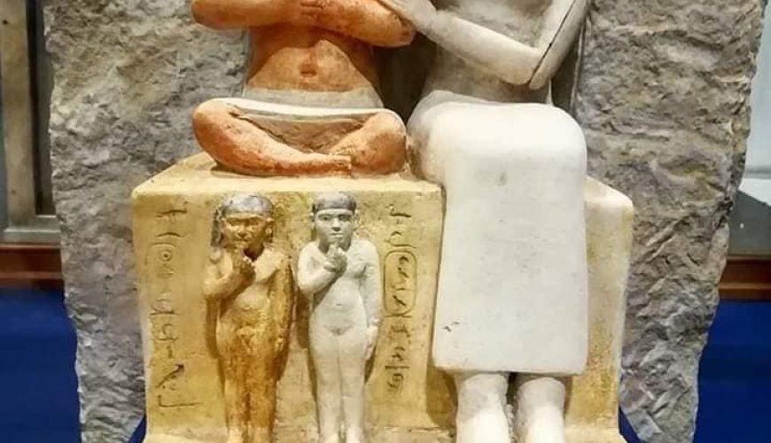 The beautiful thing that demonstrates the genius of the sculptor is the depiction of the representation of Sanab cross-legged and the place of his small feet; his two children stood in a beautiful picture that reaches the onlooker’s harmony and love.